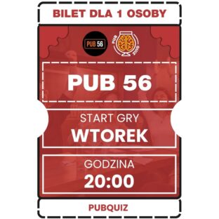 Pub 56 to miejsce, gdzie tradycja spotyka się z nowoczesnością! Dołącz do PubQuizu, rywalizuj z przyjaciółmi i baw się w przyjaznej atmosferze przy doskonałych drinkach i muzyce. 🎉