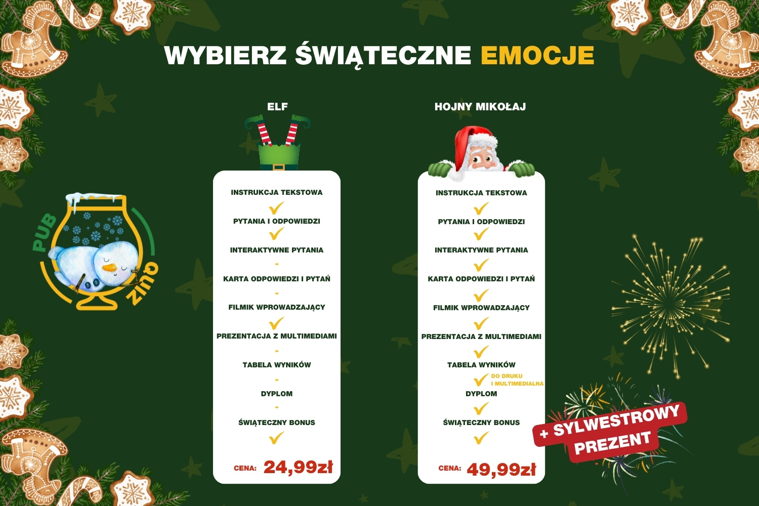 Oba zestawy to w pełni zaktualizowane wersje quizu świątecznego z 2024. Ofertę kierujemy do osób, które nie kupiły zestawu rok temu.